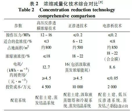 零排放常见的减量浓缩工艺包括:DTRO(或STRO)高压反渗透膜浓缩工艺、正渗透膜浓缩工艺、电渗析工艺等技术。表2对这三类膜浓缩技术进行综合对比。